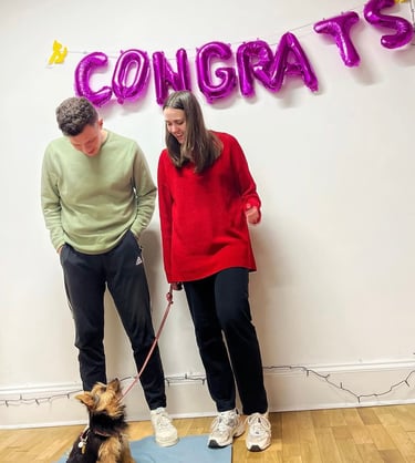 "Honestly I can’t thank Sky enough. Her knowledge is amazing and we would have been lost without her help and support. It’s also great to meet other dog owners who are going through the same thing. Plus being surrounded by puppies is amazing!" - Lisa & Dave, Glasgow